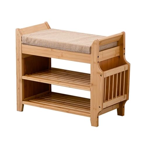 SQYHYTS Banc en Bambou pour Chaussures avec Un Coussin Moelleux Bancette À Souliers À 2 Niveaux Armoire De Couloir À Chaussures Siège Compact pour Souliers pour Couloir, Chambre,Natural,45cm
