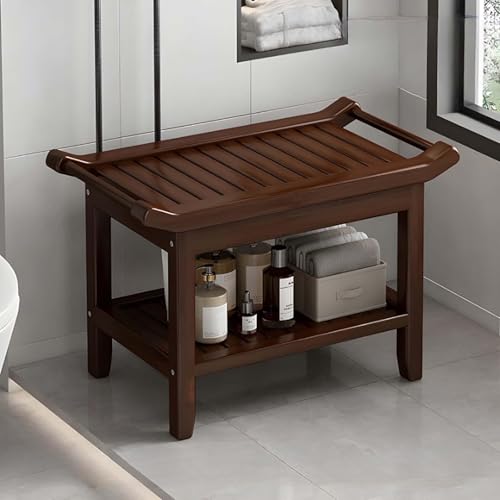 Banc de Douche en Bambou avec Pieds antidérapants, Tabouret Multifonctionnel pour Salle de Bain, Salon, Chambre, entrée, Hall, Couloir - Solution de Rangement élégante et Fonctionnelle