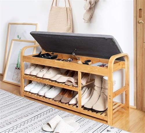 glmjyydslwx Banc à Chaussures en Bambou, Banc Entree avec Siège Rembourré, Organisateur de Chaussures, étagère à Lattes en Bambou, pour 4~8 Paires, pour Salon, Chambre : 50/70x32x45CM