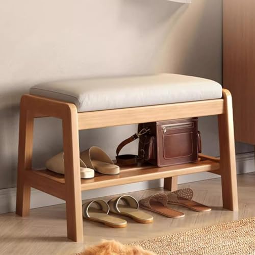 Banc en bois pour l'intérieur et la maison, construction en bois massif avec panneau lisse et design en tenon, supporte jusqu'à 150 kg, idéal pour le salon et la chambre à coucher