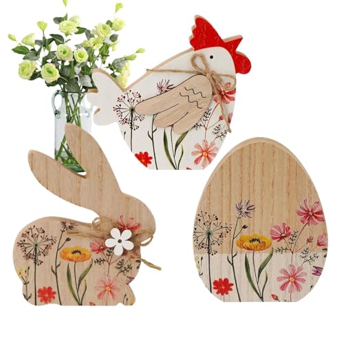 en bois de lapin de Pâques - Décoration de bureau rustique - Point central de table pour la table, fête, bureau, étagère, banc de cheminée, intérieur