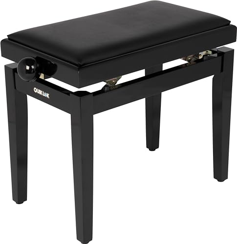 QUIK LOK - PB/100 BK L Banc de Piano en Bois, Assise en Sky Noir, Revêtement Durable, Hauteur Réglable de 48 à 57 cm, Version en Finition Noir Brillant