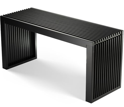 BAM BOO BOX Banc en bambou noir - Banc en bois stable sans dossier pour couloir, salle de bain, cuisine, salle à manger ou chambre à coucher - Petit banc en bois 90 x 33 x 43 cm - Charge maximale