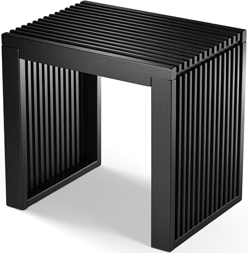 Bambou Banc - Banc en Bois - 45 x 33 x 43 cm - Meuble Salle De Bain Rangement - Meuble D'entrée - Meuble Entree - Meubles De Salon - Meuble Salon (Noir)