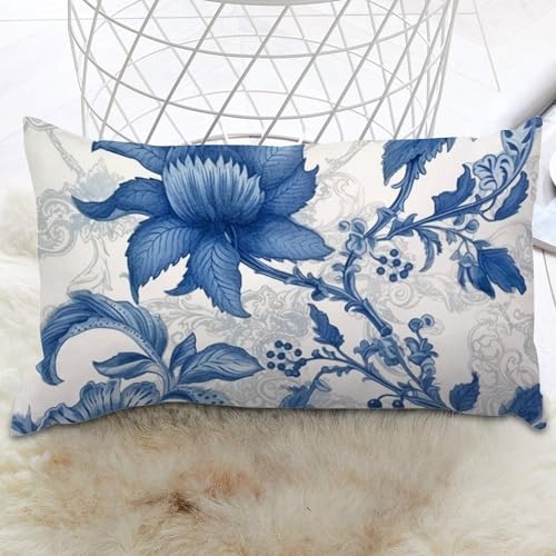 Housse de coussin lombaire bleu et ivoire, indigo, motif floral chinoiserie chic, housse de coussin rétro décorative pour lit, canapé, banc, voiture, 40,6 x 61 cm