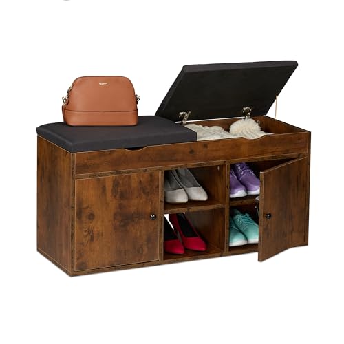 Relaxdays Banc à Chaussures, Meuble spacieux, Confortable, H x L x P : 49,5 x 100 x 34 cm, Marron et Noir