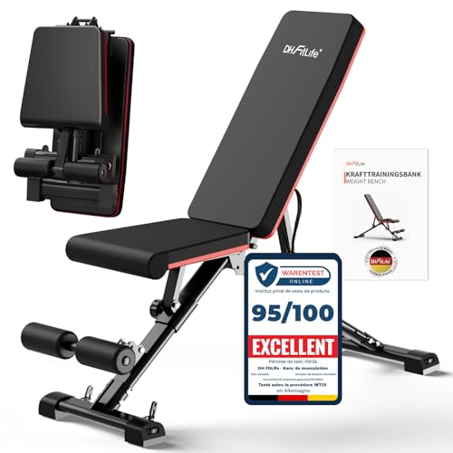 DH FitLife Banc de musculation pliable,banc réglable pour le développé couché, le curl biceps, la musculation du dos et des abdominaux,banc inclinable avec banc curl et extenseur des jambes
