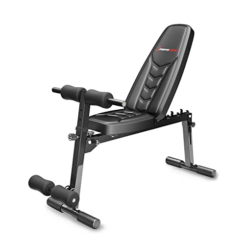 Banc de musculation SportPlus pliable pour la maison - banc de musculation multifonctionnel pour la musculation à la maison - réglable en 6 positions -24-79° - appareil de fitness pour tout le corps,
