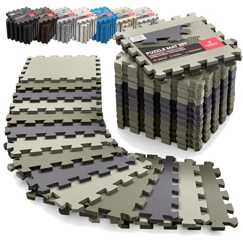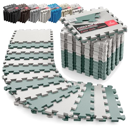 Tapis de Fitness Protection de Sol Salle de Sport - Dalles en Mousse sans BPA + Bordures | Matelas Puzzle Tatami EVA Caoutchouc pour Matériel Gym Banc de Musculation Course Garage Piscine Isolation