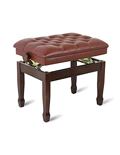 HPTHLY Tabouret De Piano, Banc De Piano Réglable, Tabouret De Piano Rembourré De Luxe, Tabouret De Piano Double avec Compartiment De Rangement, Siège Rembourré en Cuir(Brun Noyer)