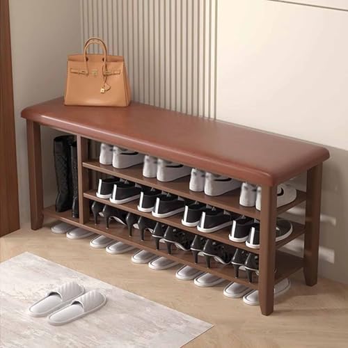 Banc à chaussures en noyer massif avec coussin - Solution de rangement à 2 niveaux pour entrée, repose-pieds élégant pour chambre à coucher, salon, balcon (80 x 30 x 42 cm)