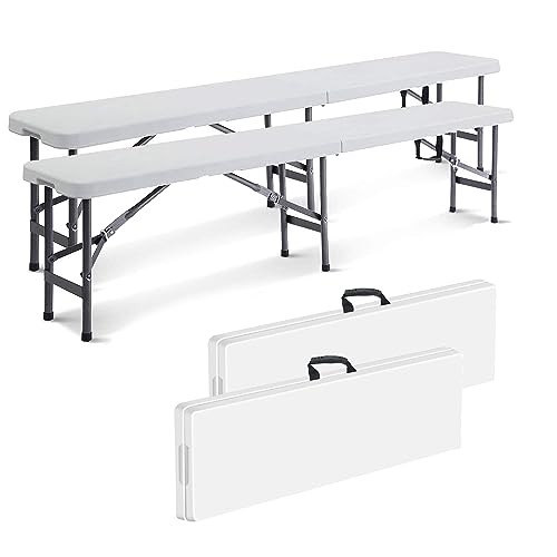 TERRE JARDIN - Banc de Jardin Pliable, 183x30x44 cm, Acier et Plastique - 4 Places - Compact - Blanc