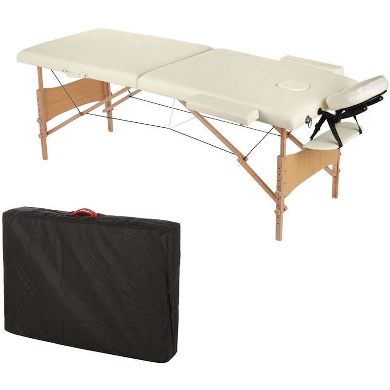 Canapé de massage mobile 2 zones avec sac, banc de massage pliable, de couleur crème, nouveau