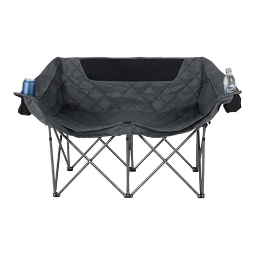 Relaxdays Banc de Camping Pliable 2 Places avec accoudoirs, Porte-gobelets, Sac Transport, 84x146x54 cm Gris