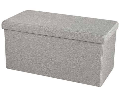 HOME DECO FACTORY - HD6323 Coffre Banc Pliable Tissu - Conçu pour Salon ou Chambre - Espace de Rangement - Toucher Doux - Dimensions 76 x 38 x 38 cm - Couleur Gris Clair