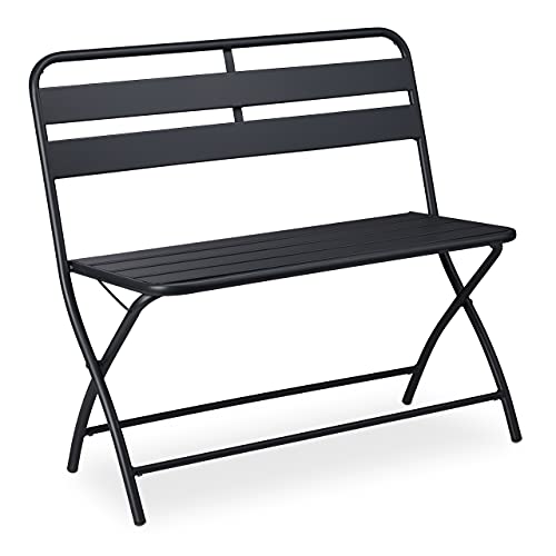 Relaxdays Banc de Jardin, Pliable, résistant aux intempéries, 2 sièges, pour Balcon, en Acier, HxlxP 83,5x90x49 cm, Gris