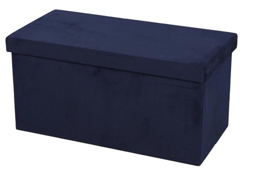 Urban living KUBE VELOURS COTELE BANC DE RANGEMENT PLIABLE BLEU 76X37,5XH37,5CM