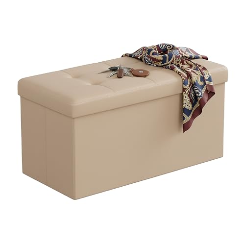 HOME DECO FACTORY - HD7799 - Coffre Banc Pliable Emilia - Meuble de Rangement Pratique en Polyester - Design Épuré - Idéal pour Salon ou Chambre - Capacité de Rangement Optimale - Beige