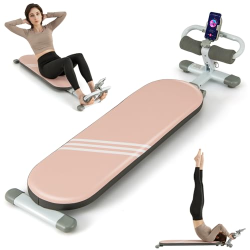COSTWAY Banc de Musculation Multifonction avec 3 Angles Longueur Réglable, Banc de Redressement Assis Pliable Charge 150KG, pour Abdominaux Taille Dos, pour Adolescents 14-18 Ans (Rose)