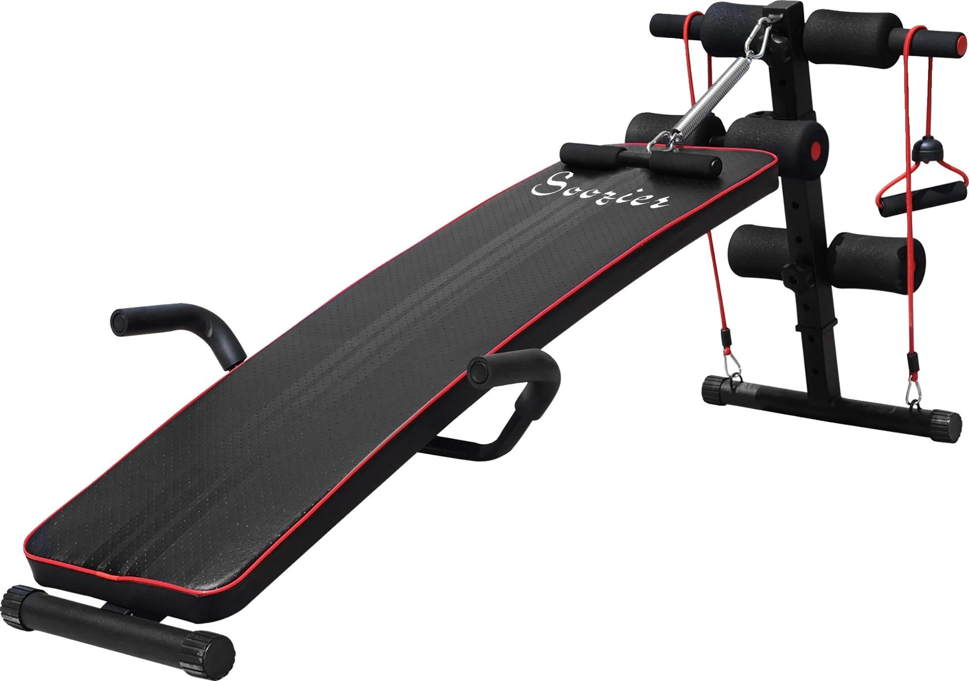 tectake® Banc de musculation pour Abdominaux, 6 niveaux de hauteur réglables, 2 haltères et 2 cordes d’entraînement inclus, Banc abdominaux Sport Musculation maison Fitness Muscu Abdos Home gym