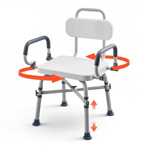 VEVOR Chaise de Baignoire Pivotante, Banc de Transfert Baignoire avec Accoudoirs Relevables et Dossier, Capacité 227 kg, Siège de Douche pour Adultes, Personnes Âgées et Handicapés, Hauteur Réglable