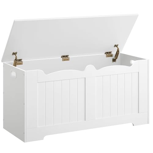 Hzuaneri Coffre de Rangement 110 cm, Banc de Rangement, Banc à Chaussures, 2 Charnières Stables, 40 x 110 x 48 cm, pour Entrée, Chambre, Salon, Blanc SB25503X