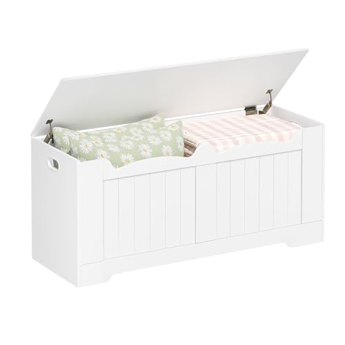 Hzuaneri Coffre de Rangement, Banc de Rangement, Banc à Chaussures, 2 Charnières Stables, 40 x 100 x 48 cm, pour Entrée, Chambre, Salon, Blanc 01003XSB