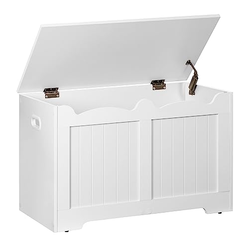 Hzuaneri Coffre de Rangement, Banc de Rangement, Banc à Chaussures,2 Charnières Stables, 40 x 76 x 48 cm, pour Entrée, Chambre, Salon, Blanc SB04403X