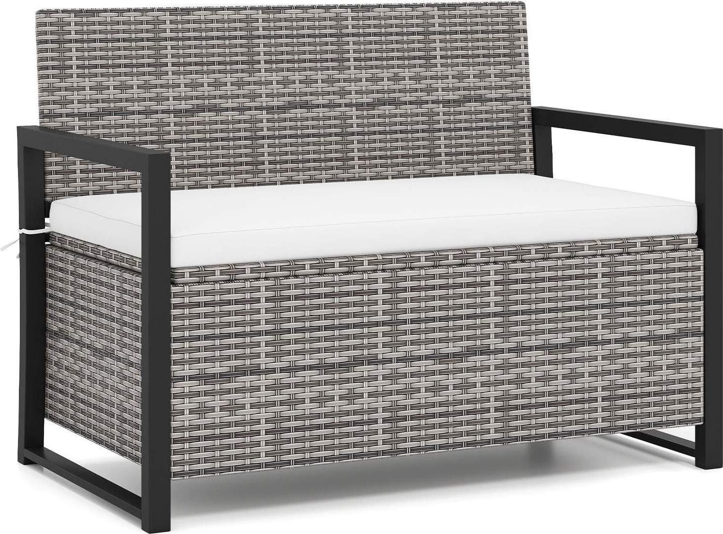 Banc de rangement d'extérieur en rotin avec coussin, capacité de charge de 360 kg