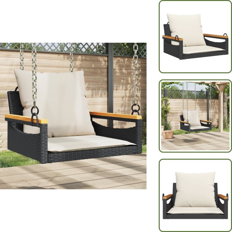 The Living Store Balancelle avec coussins noir 63x62x40 cm résine tressée - Balancelle De Jardin - Banc De Jardin - Chaise Suspendue - Fauteuil