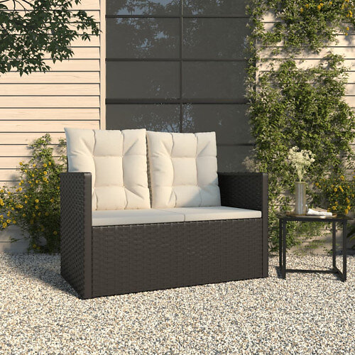 Trädgårdsbänk med dynor svart 105 cm konstrotting
