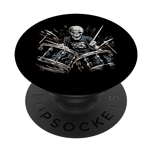 Skeleton Drummer Guy Rock and Roll Band Rock on Drum Kit PopSockets PopGrip Adhésif