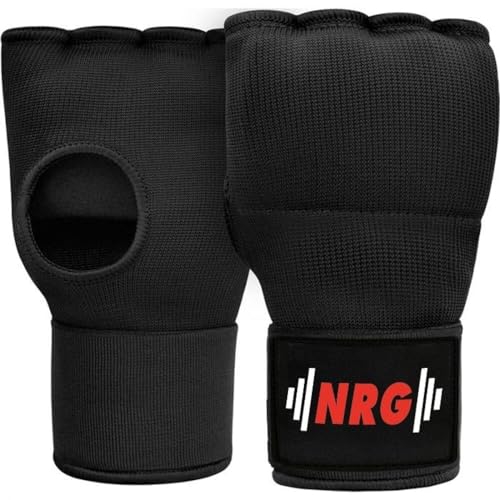 NRG Fitness Gants de boxe en gel pour boxe XL (24-25 cm) – Gants intérieurs Bandage 75 cm – Gants de punching Kickboxing, MMA & Muay Thai – Bandages de poignet – Gants de boxe d'intérieur Shell Shock