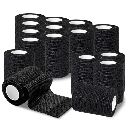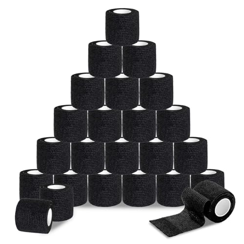 ROELLY 24 Rouleaux de Bandage Tape, Bandage Autoadhésif 5cm x 4,5 m, Bandages de Premiers Secours pour Doigts, Peuvent Être Utilisés pour Les Personnes ou Les Petits Animaux, (Noir)