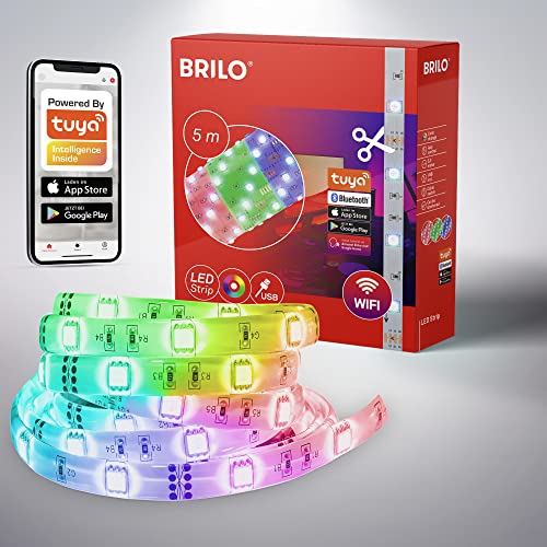 BRILONER - RGB LED Strip 5m, Bande LED intelligente à raccourcir, contrôle par app, capteur de musique, contrôle par la voix, Bande LED, Bande LED à contrôle musical