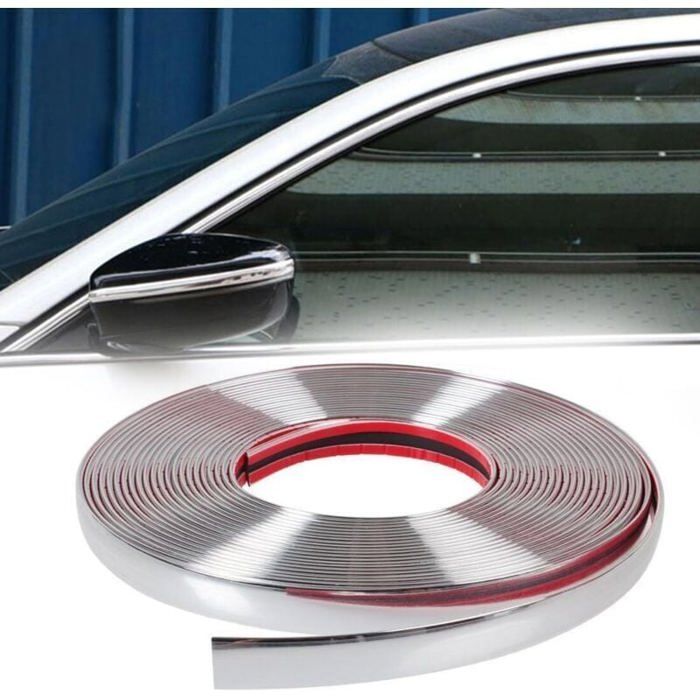 Bande Chrome Adhesive Voiture, 10mm x15m Voiture Barre Chromé Styling Bande Baguette Adhésive Bandes Décoratives de Style Chrome