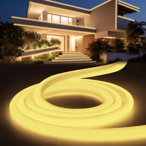 YOODI LED Neon Blanc Chaud 20m, Flexible Ruban Led Exterieur Etanche IP65, Tube Rond Découpable Lumiere Bande 220V LED Strip Light Pour Maison Jardin Fête Chambre Deco, Comprend une Alimentation