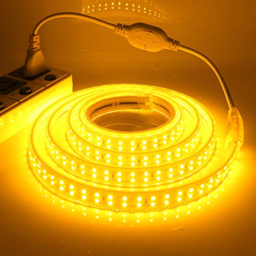 XUNATA Double rangée Jaune chaud Bande de LED, 220V 2835 SMD 180leds / m IP65 imperméable à l'eau flexible LED Light Strip pour Home Lighting Decor LED bande lumineuse (Jaune, 20M)