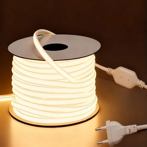 BENLUN 220V Ruban LED COB Exterieur Etanche 20M 2700K Blanc Chaud, Flex Découpable IP65 Bande LED Étanche Sans Transformateur, Prise Incluse, pour Chantier, Chambre