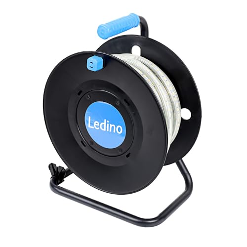 Ledino Wickede Bande lumineuse LED professionnelle 25 m sur enrouleur de câble – 180 LED/m, 65 000 lumens, 600 W, 4000 K, blanc neutre, IP65, guirlande lumineuse professionnelle pour chantier