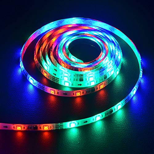 OUSFOT Bande LED 5M Bande LED RGB SMD 5050 150 LED avec télécommande changement de couleur autocollante pour décoration de Noël salle maison bar fête
