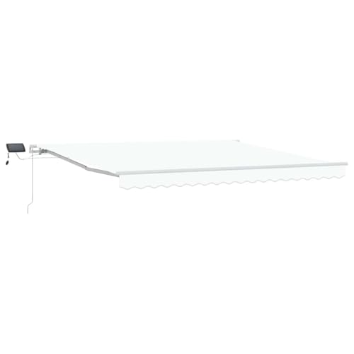 Foknhdi Store enrouleur blanc 400 x 300 cm en tissu résistant aux UV et cadre en acier, extension manuelle, bande LED, protection solaire moderne pour jardin, terrasse et balcon
