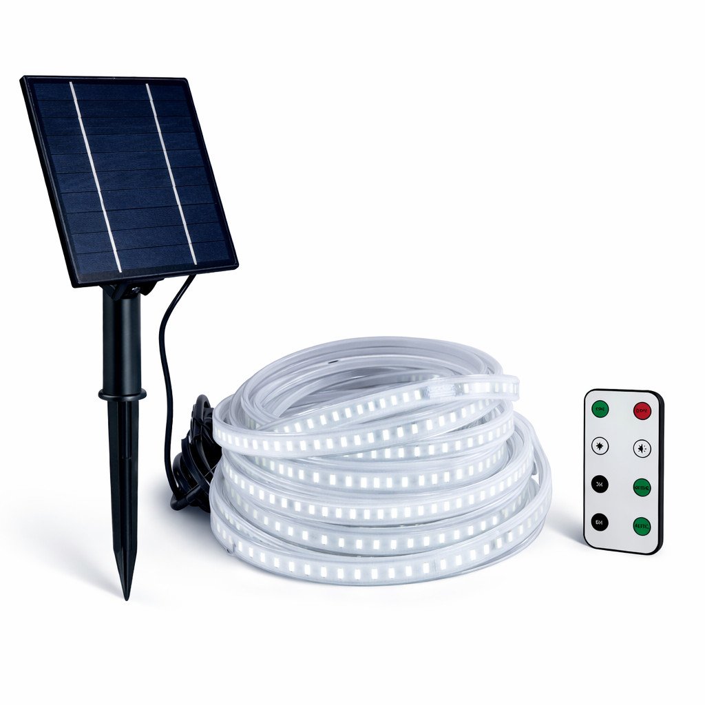 zhonghua Ruban LED Solaires Exterieur, 10M 240LED Bande Solaire LED Lumière Extérieure étanche Corde Flexible avec Télécommande et Minuterie (Blanc)