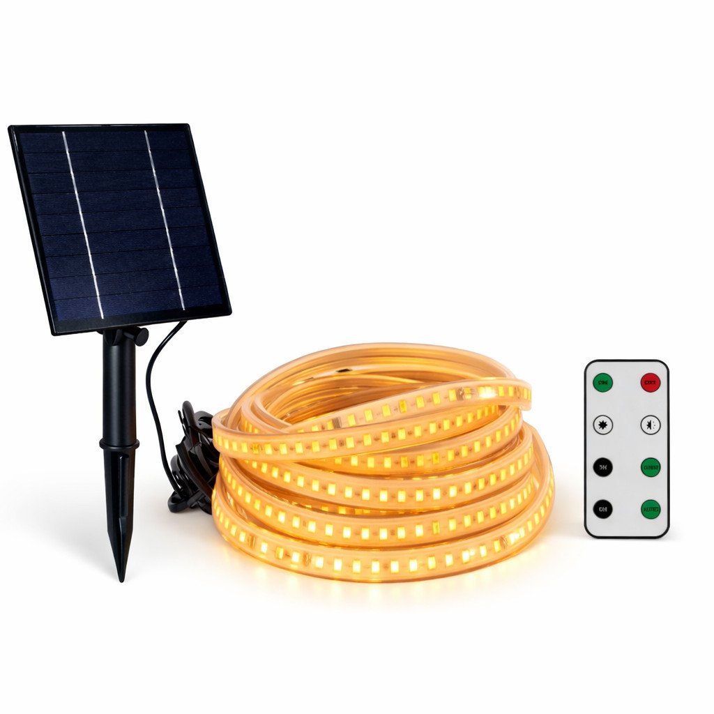 Bande LED solaire autocollante blanc chaud 200 cm pour l'extérieur – 120 LED – Bande lumineuse d'extérieur étanche à énergie solaire – Bande lumineuse LED pour jardin, terrasse, éclairage décoratif