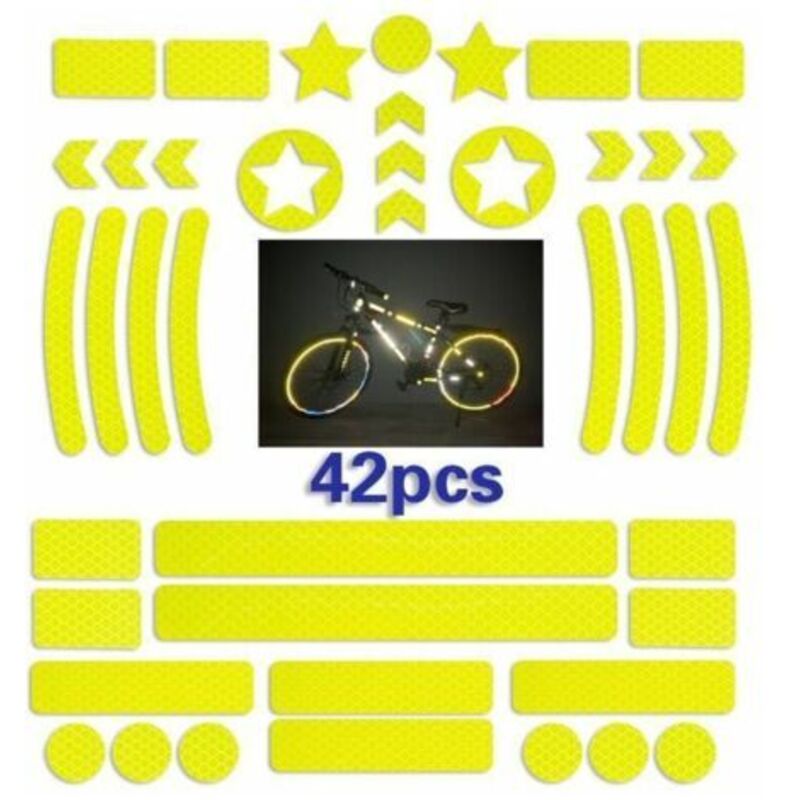Autocollants Réfléchissants pour Casque et Vélo - 42 Pièces Bande Réfléchissante Autocollante Jaune - Pour Sécurité Cycliste et Scooter - Visibilité