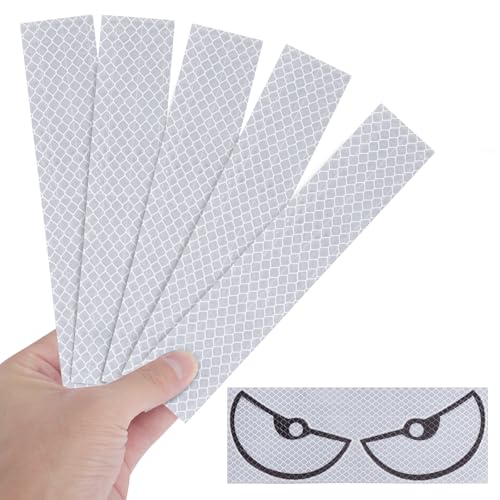 FIUTEKO Lot de 5 Autocollants Réfléchissants + Stickers Yeux, Bande Réfléchissante Diamant Autocollante Étanche Haute Visibilité Autocollants de sécurité pour Voiture Moto Casque Sac Vélo