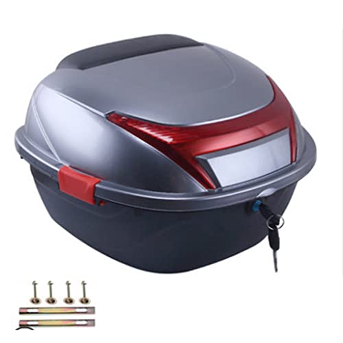 CFTGIW Boîte Arrière de Moto, Boîtier Supérieur de Rangement de Bagages pour Casque de Grande capacité avec Bande Réfléchissante d'eau, Universelle pour électromobile (Gris Argent Grande Taille)