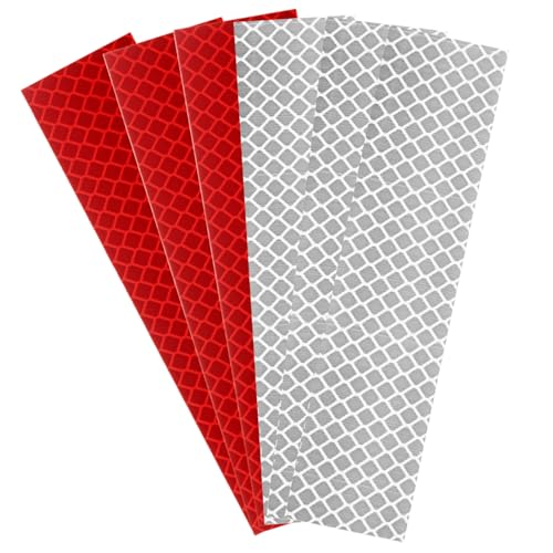 QUARKZMAN 6 Rouleaux de Bande Réfléchissante 1.18" x 4.72" Autocollants adhésifs Haute Visibilité Extérieur Imperméables pour Camions Vélo Voiture Moto Casque Boîte aux Lettres. Blanc Rouge