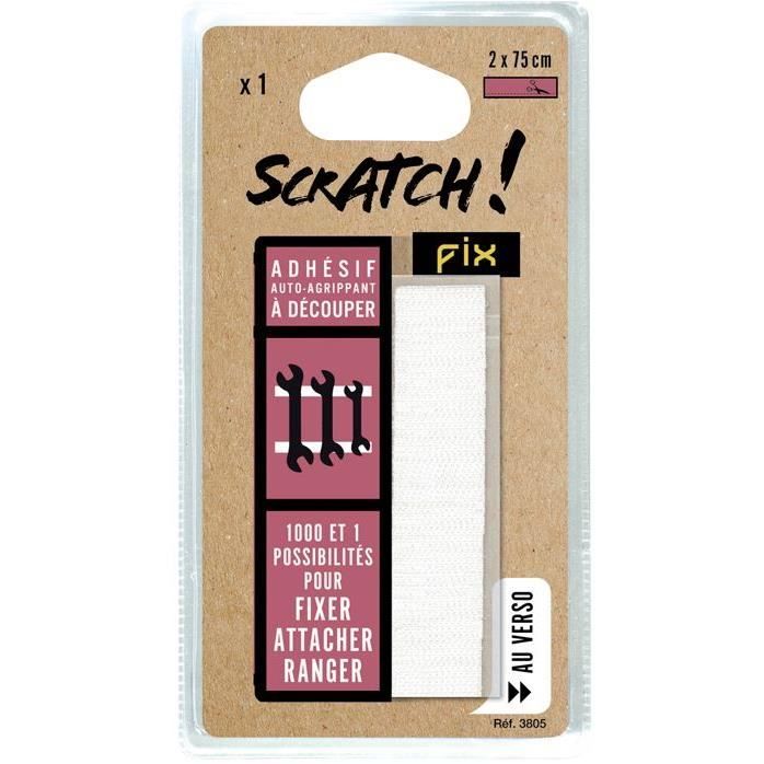 Bande adhésive - SCRATCH FIX - 2 x 75 cm - Blanc - Réutilisable - Multi-usages