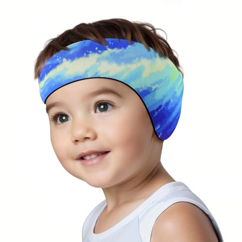 HeySplash Bande de Natation Étanche pour Les Enfants, Bande de Sport Nautique, Bandeau Imperméable de Haute Élasticité, Bandeau Cheveux en Néoprène pour Le Surf, S, Bleu Tie-Dye